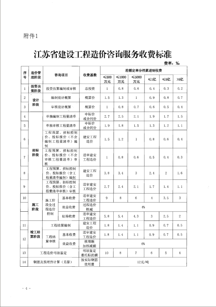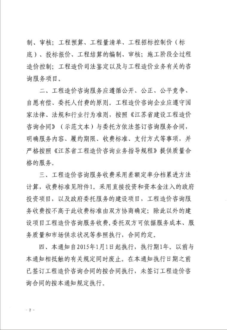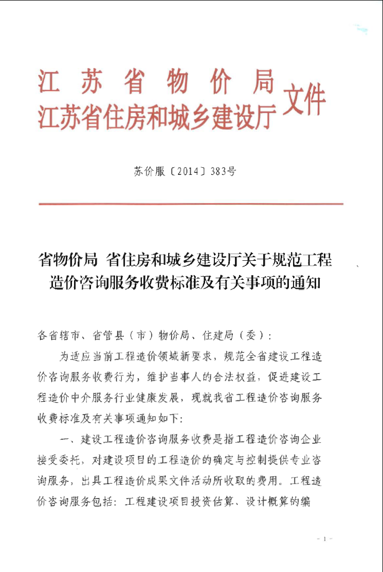 江苏省工程造价服务收费标准 苏价服【2014】383号