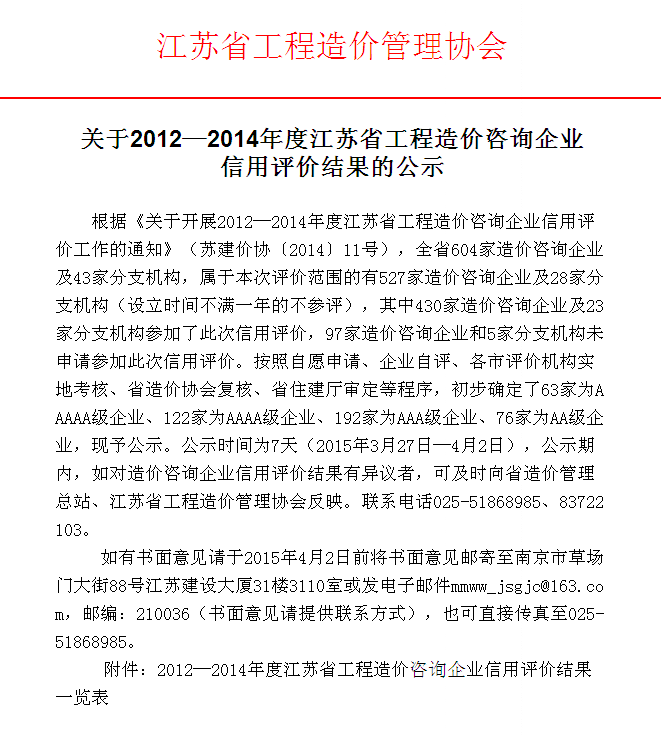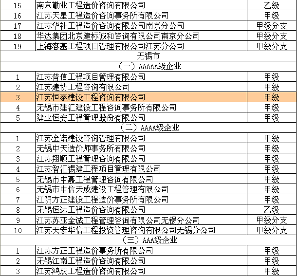 祝贺我公司取得江苏省工程造价咨询企业信用AAAAA级企业