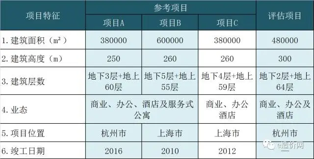 表1  评估项目与各参考项目的项目特征比较表
