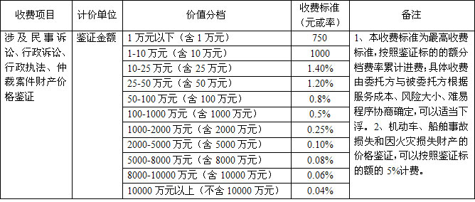 司法鉴定收费标准: